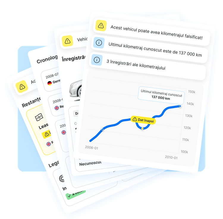 Cumperi second-hand? Scanăm peste 900 de baze de date internaționale ca să te ajutăm să eviți afacerile păguboase și să te decizi dacă mașina chiar ți se potrivește.